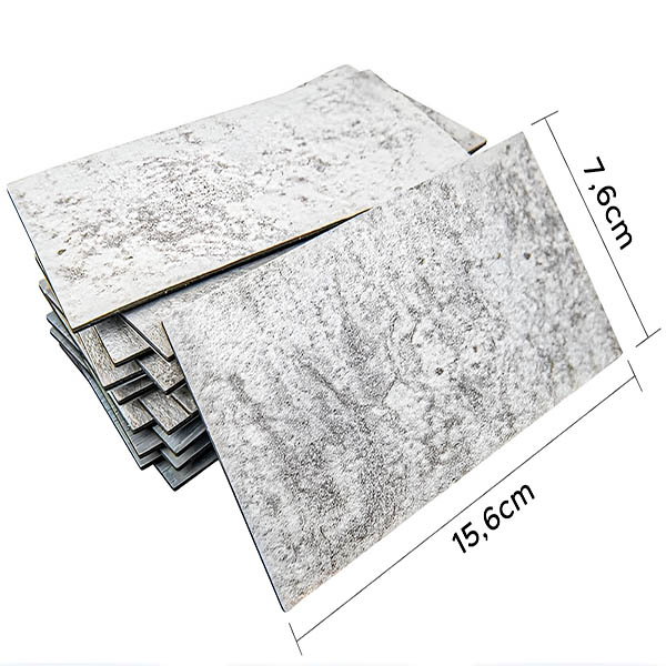 La forma rectangular (15,6 x 7,6 cm) permite varios diseños atractivos. Cada paquete de 10 azulejos cubre unos 0,12 metros cuadrados, perfecto para diseños creativos.
