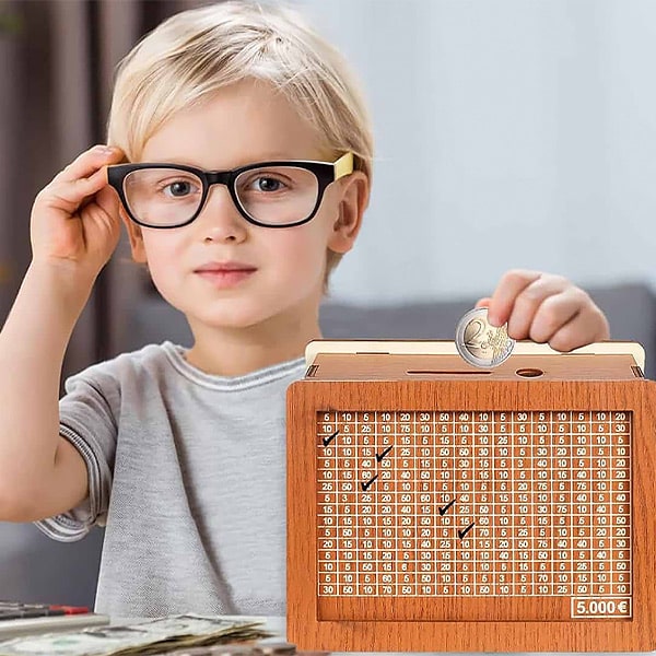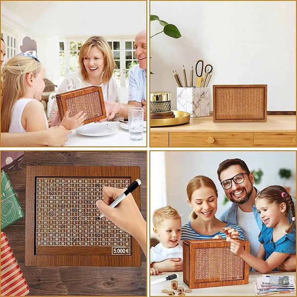 ¡Configura tu caja de ahorro COINSAVE en minutos! El rotulador y las hojas de ahorro incluidas facilitan la personalización. Su diseño elegante se integra perfectamente en tu hogar u oficina.