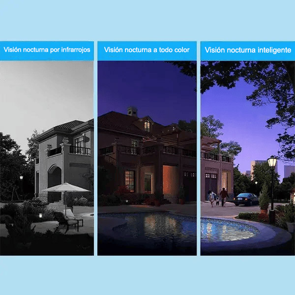 La cámara dispone de 3 luces infrarrojas de gran angular y 4 ledes brillantes, lo que permite vídeos a todo color tanto de día como de noche.