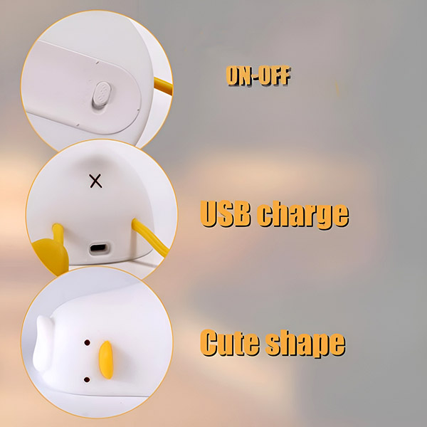 Esta lámpara con forma de pato emite una luz delicada y tranquilizadora, perfecta para crear un ambiente agradable. Ayuda a los niños a conciliar el sueño fácilmente y también puede utilizarse como iluminación ambiental para adultos.