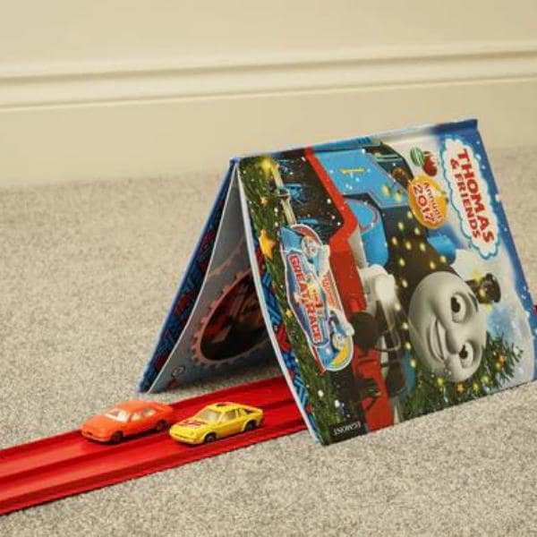Utiliza los coches de juguete que ya tienes, fíjalo fácilmente a una ventana o puerta, hazlo rodar y empieza a correr, impulsado únicamente por la gravedad, sin necesidad de pilas ni de costosos complementos.