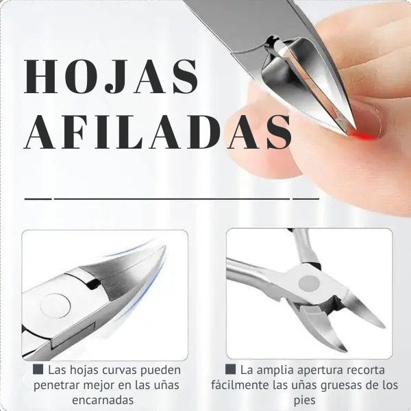 Diseñado especialmente para uñas engrosadas y encarnadas, este juego ofrece la fuerza y precisión necesarias para un cuidado efectivo sin molestias ni riesgo de lesiones.