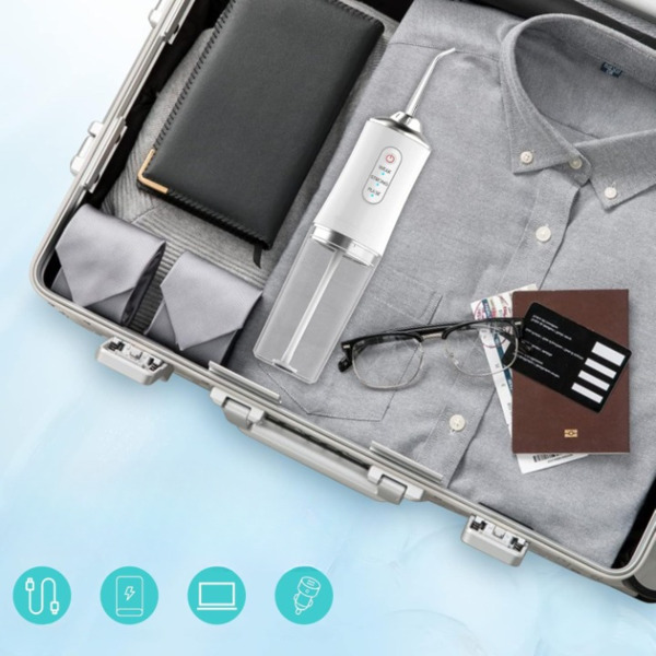 Con un peso de solo 350 g, este irrigador bucal portátil cabe sin esfuerzo en cualquier bolsa de viaje.