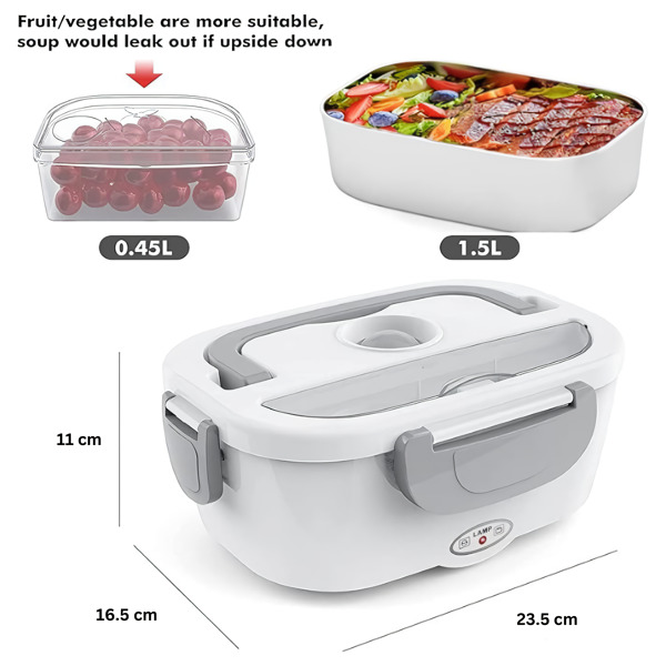 Los 2 compartimentos de PP extraíbles mantienen el plato principal y la guarnición separados, y ambos van directamente al lavavajillas después. Funciona en la oficina, en el automóvil, en una obra o en cualquier habitación con un enchufe de corriente.