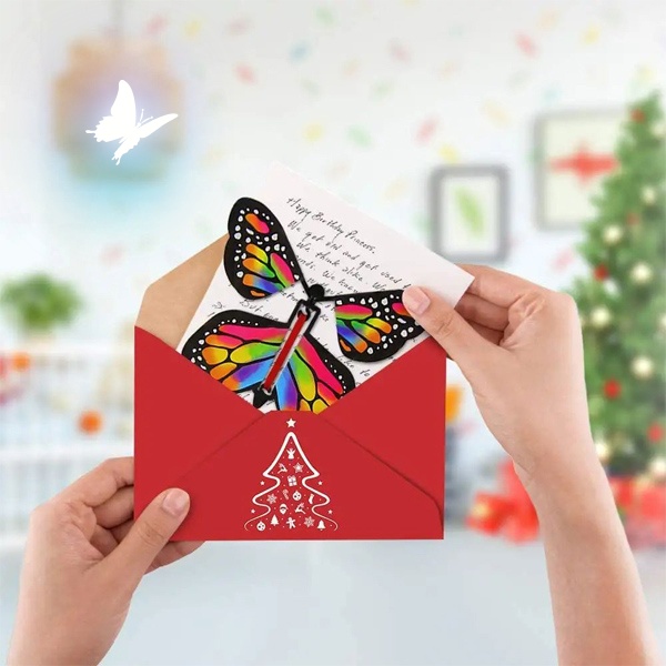 Las FLUTTIES también se pueden añadir a tarjetas de felicitación, creando una experiencia especial que encantará al destinatario. Se testigo de la magia cuando las mariposas se relajen y comiencen su baile.