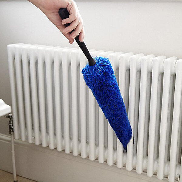 No es necesario desmontar las rejillas de tu radiador. DUSTOFF está hecho a medida para la limpieza de radiadores. Su carga electrostática atrae el polvo y la suciedad, por lo que es ideal para radiadores tipo panel, columna, lobulados, tipo escalera y toalleros.