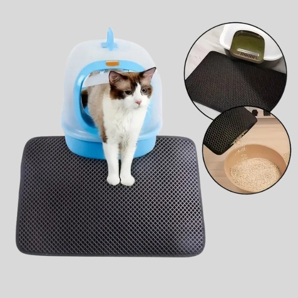 🐾 Coloca la alfombrilla junto a la caja de arena para gatos.